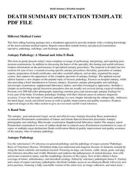 Read Online death summary dictation template Paperback Open Library
